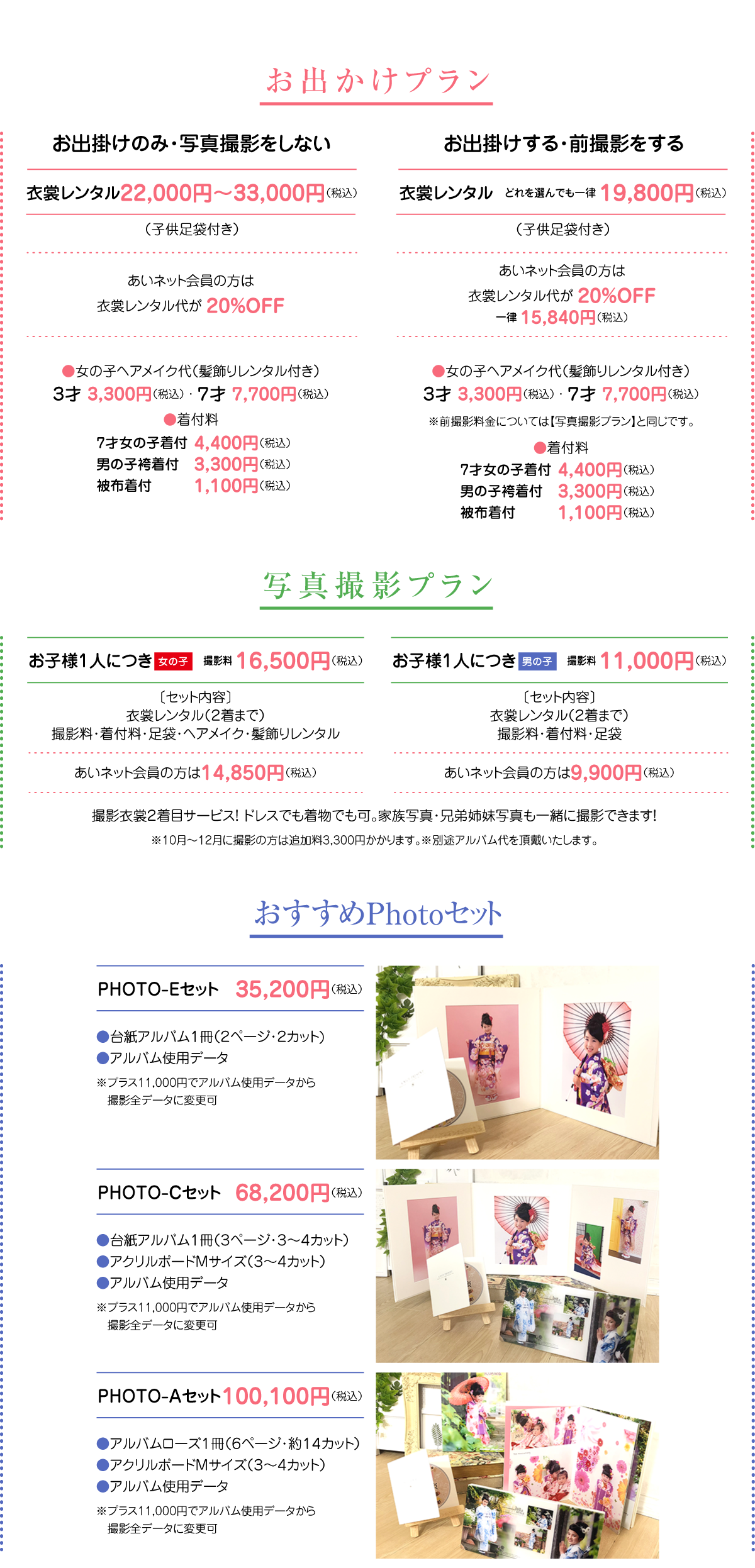 ●撮影した全データは撮影日より3ヶ月、アルバム等で使用したデータは撮影日より1年間保管いたします。保管期間を過ぎますと追加のご注文はお受けできません。ご了承ください。