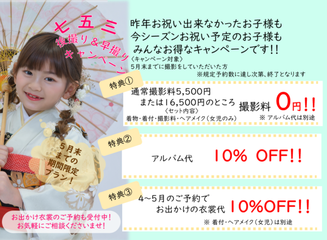 七五三 4月2日(木)より予約スタート!!