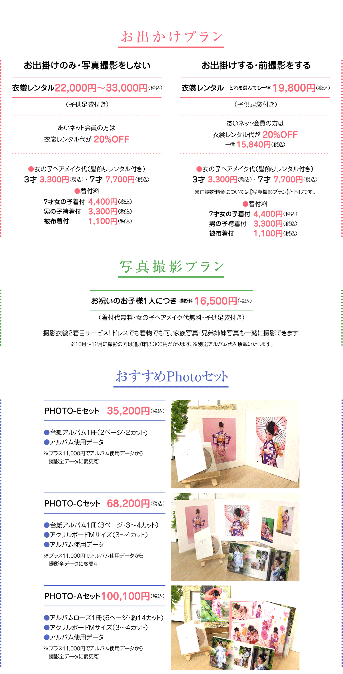 ●撮影した全データは撮影日より3ヶ月、アルバム等で使用したデータは撮影日より1年間保管いたします。保管期間を過ぎますと追加のご注文はお受けできません。ご了承ください。